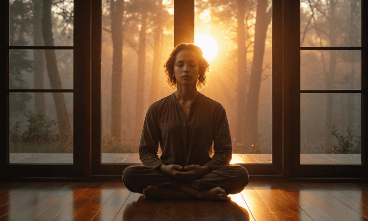 Before bed, stretch slowly, exhale longer than inhale, place one hand on chest and one on belly. Whisper reassurance: You are safe to rest.
