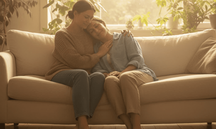 Human contact regulates more powerfully than solitude. A trusted hug, hand on shoulder, or mindful self-touch (palms over heart) signals safety to the body faster than any mantra.